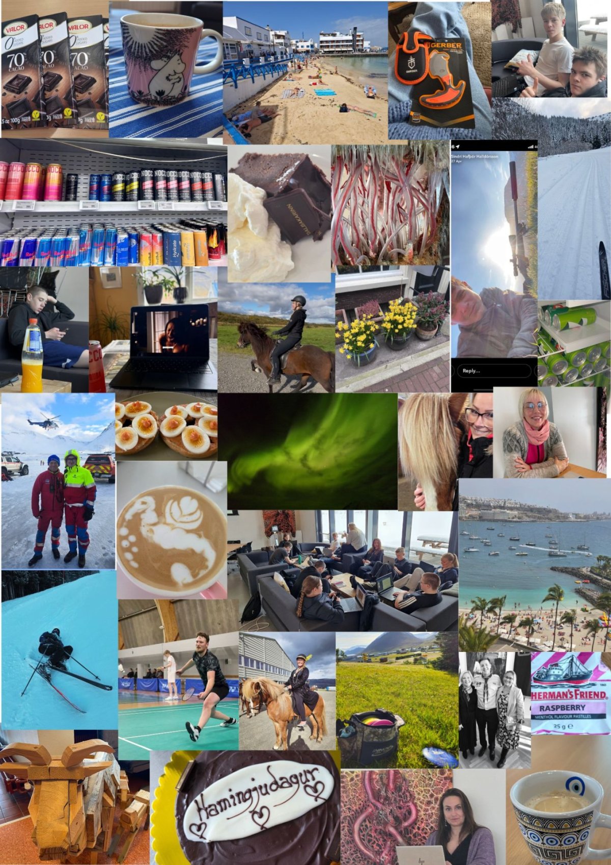 Menntaskólinn á Tröllaskaga vinnu markvisst með heimsmarkmiðin og í tilefni dagsins voru nemendur hvattir til að mæta í skólann í klæðnaði sem þeim liði sérstaklega vel í. Auk þess var skorað á nemendur og starfsfólk að setja á sérstaka myndasíðu myndir af því sem veitti þeim hamingju.Var áhugavert að sjá hversu margar myndir sýndu útivist, hreyfingu og samveru en auk þess var kaffi og súkkulaði áberandi á kennaravængnum. Til að auka hamingju dagsins var boðið upp á súkkulaðikökur að loknum hádegisverði.Var ekki annað að sjá en hamingjustuðullinn hækkaði töluvert við það.